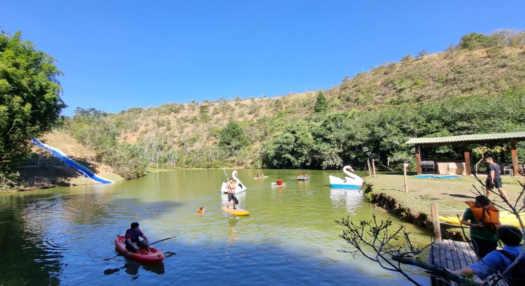 O lago do hotel é um destaque especial, oferecendo atividades como pedalinhos, toboáguas e uma emocionante tirolesa. Esses momentos de lazer tornam a estadia no Angico uma aventura inesquecível para todas as idades, criando um ambiente de diversão e alegria ao ar livre.