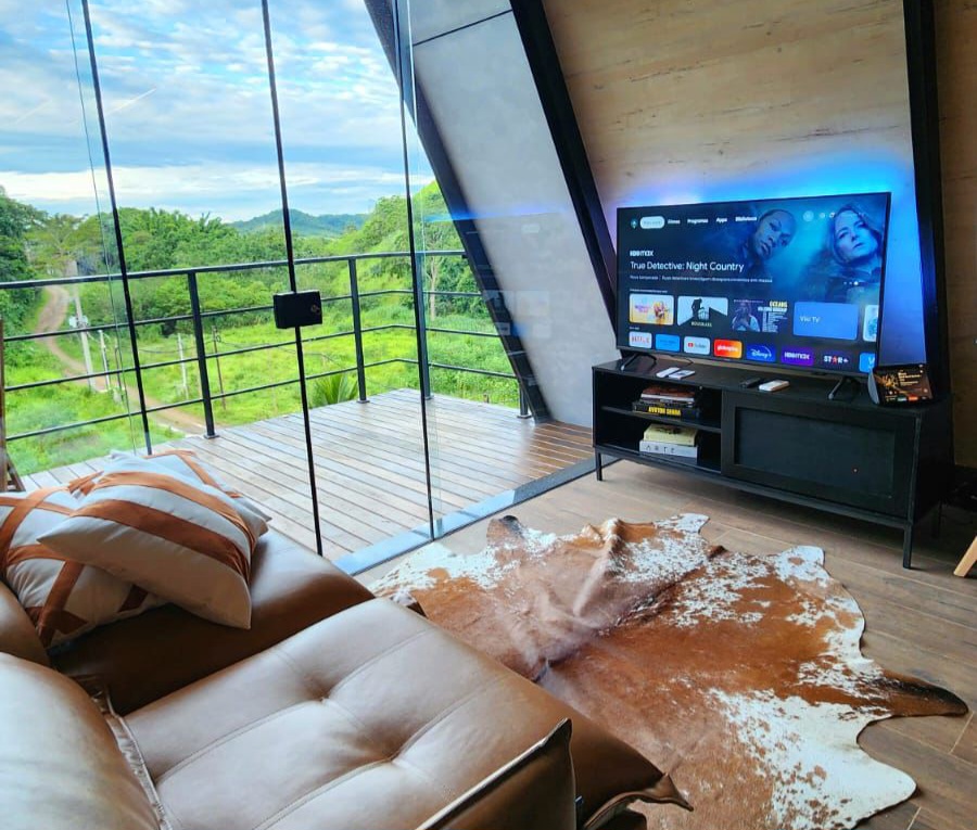 Equipada com fogão por indução, forno micro-ondas, geladeira, air fryer, sanduicheira, TV smart, e até mesmo uma assistente virtual como a Alexa, a cabana garante total conforto e segurança aos hóspedes, além de estacionamento exclusivo.